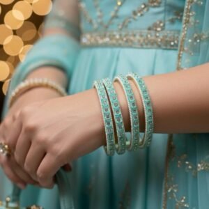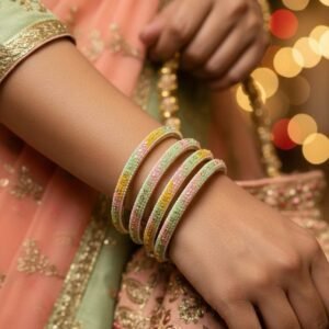 Light Shade Multi Stone Work Glass Bangles