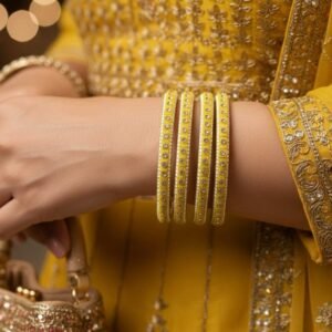 Lemon Glow Brass Bangles – 4 Pc Gold Polish Set