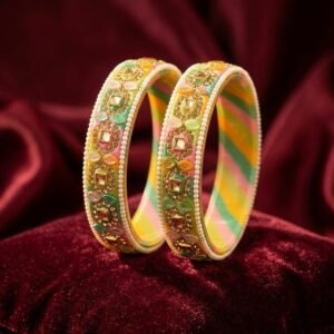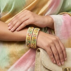 Multicolor Gold Polish Brass Bangles Set – 4 Piece Designer Combo