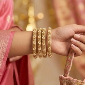 Mehndi Gold Polish Brass Bangles Set – 4 Piece Designer Combo