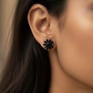 Black American Diamond Silver Plated Stud Earrings – Stylish AD Tops