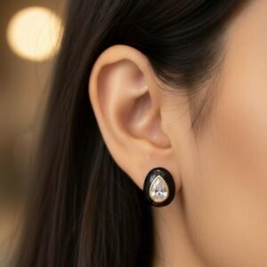 Black Stone American Diamond Designer Earrings