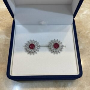 American Diamond Ruby Stone Silver Plated Earrings for Women | Party Wear AD Tops