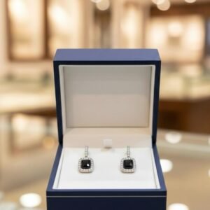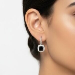 Black Hanging American Diamond Silver Plated Earrings – Designer AD Tops