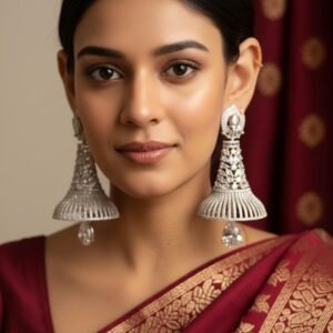 American diamond stone Earrings Silver colour Tops Silver plated Mrp 599 rs