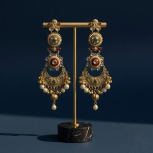 Kashmira Long Earrings with Gold Polish – Red & Green Meenakari Work