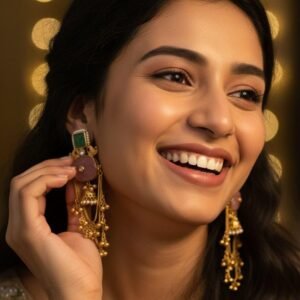 Kashmira Long Earrings with Gold Polish – Multi-Stone Colour