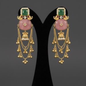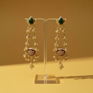 Kashmira Long Earrings – Green Stone Work with Gungrroo