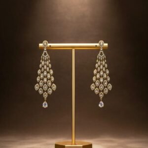 White Pearl American Diamond Gold Plated Earrings with Italian Sheet Work – Designer AD Tops