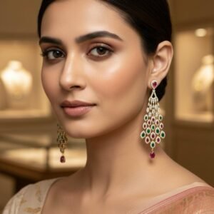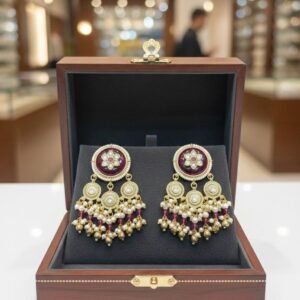 Long Earrings – Red Pink Stone Work