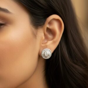 • Round American Diamond Gold Plated Stud Earrings – Classic AD Tops