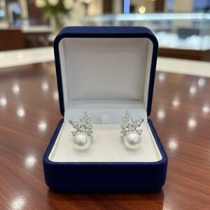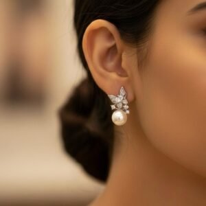 Pearl Hanging American Diamond Silver Plated Earrings – Elegant AD Tops