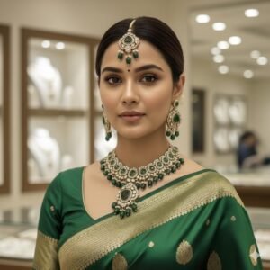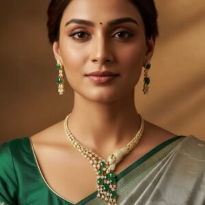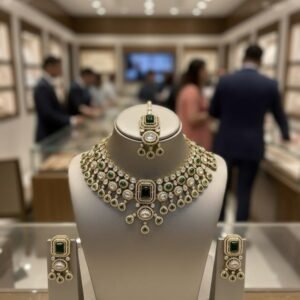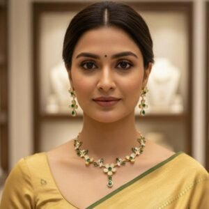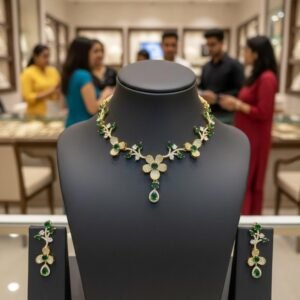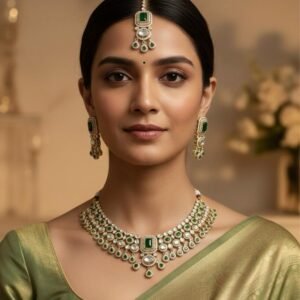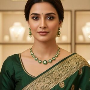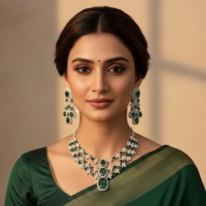 Emerald Glow Antique American Diamond Necklace Set