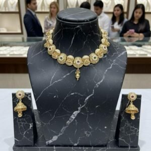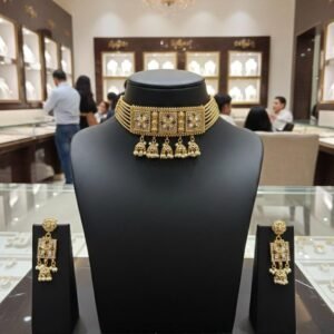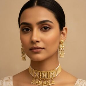 Gold-Plated Choker Necklace Set with Jhumka Earrings