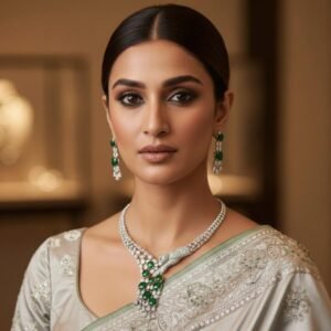 Emerald Heritage American Diamond Necklace Set