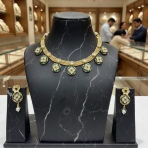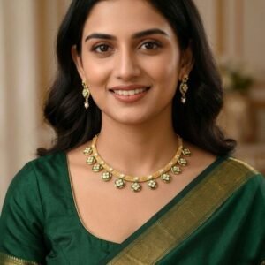 Emerald Grace Gold Polish Green Stone Necklace Set