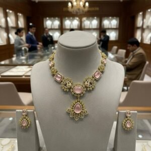 Pink Blossom Antique American Diamond Necklace Set