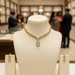 Golden Aura American Diamond Necklace Set