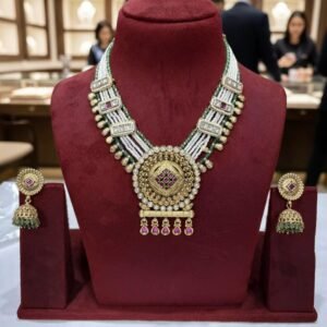 Heritage Heavy Necklace Set with Earrings – Colourful Stones & Gold Polish