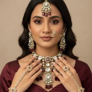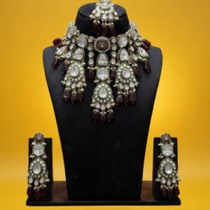 Royal Kundan Bridal Jewellery Set – Mehroon (Customizable in Green & White-Golden)