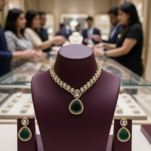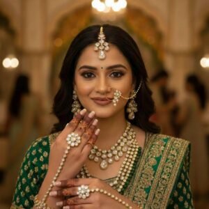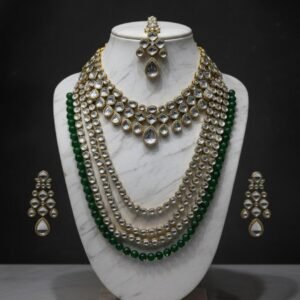 Royal Kundan Bridal Jewellery Set – Green (Customizable in Red & White-Golden)