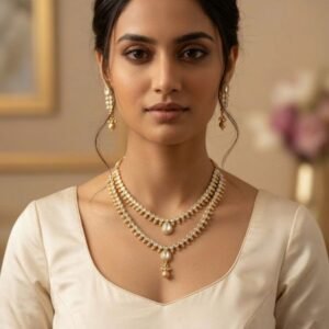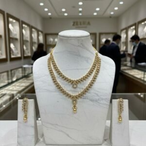 Royal Polki Glow Gold Polish Two Line Necklace Set