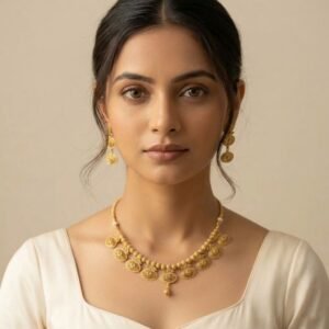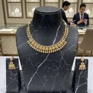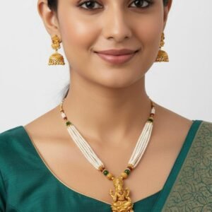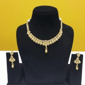 Temple Gold Polish Necklace Set with Earrings – Gold Plated Work