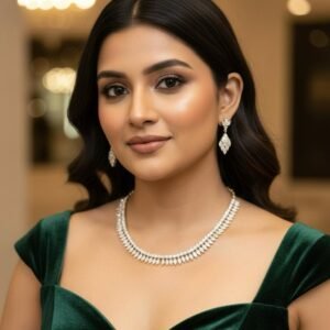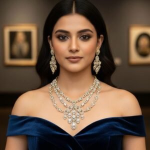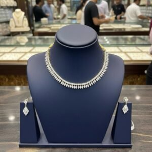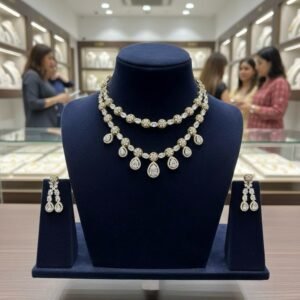 American Diamond & Pearl Work Silver Plated Necklace Jewellery Set