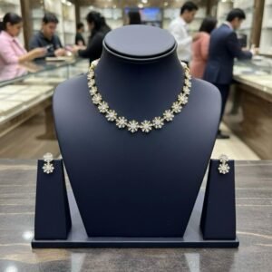 American Diamond Antique Gold Polish AD Necklace Jewellery Set