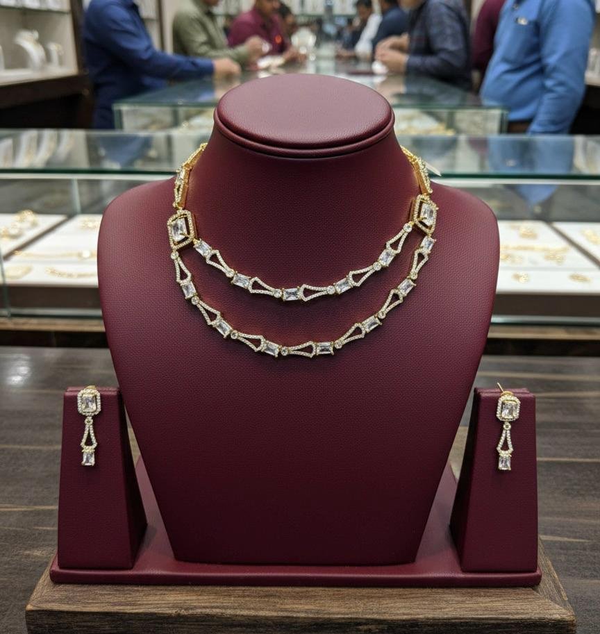 Be the first to review “American Diamond Antique Gold Polish AD Necklace Jewellery Set”