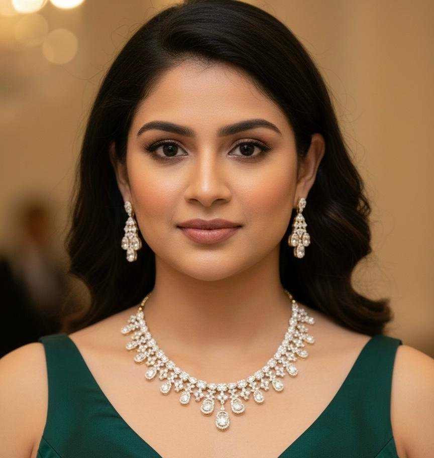 Ideal for weddings, festivals, parties, and special celebrations, this necklace set complements sarees, lehengas, and traditional outfits beautifully. Lightweight, comfortable, and designed for lasting shine, it delivers luxury and elegance at great value.