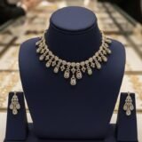 Be the first to review “American Diamond Antique Gold Polish AD Necklace Jewellery Set”