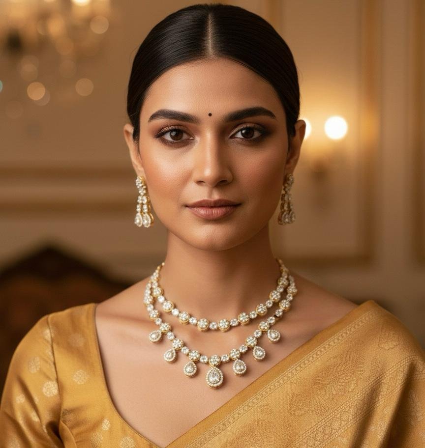 Ideal for weddings, festivals, receptions, and special celebrations, this necklace set pairs beautifully with sarees, lehengas, and ethnic outfits. Lightweight, comfortable, and designed for lasting shine, it delivers elegance, sophistication, and excellent value.