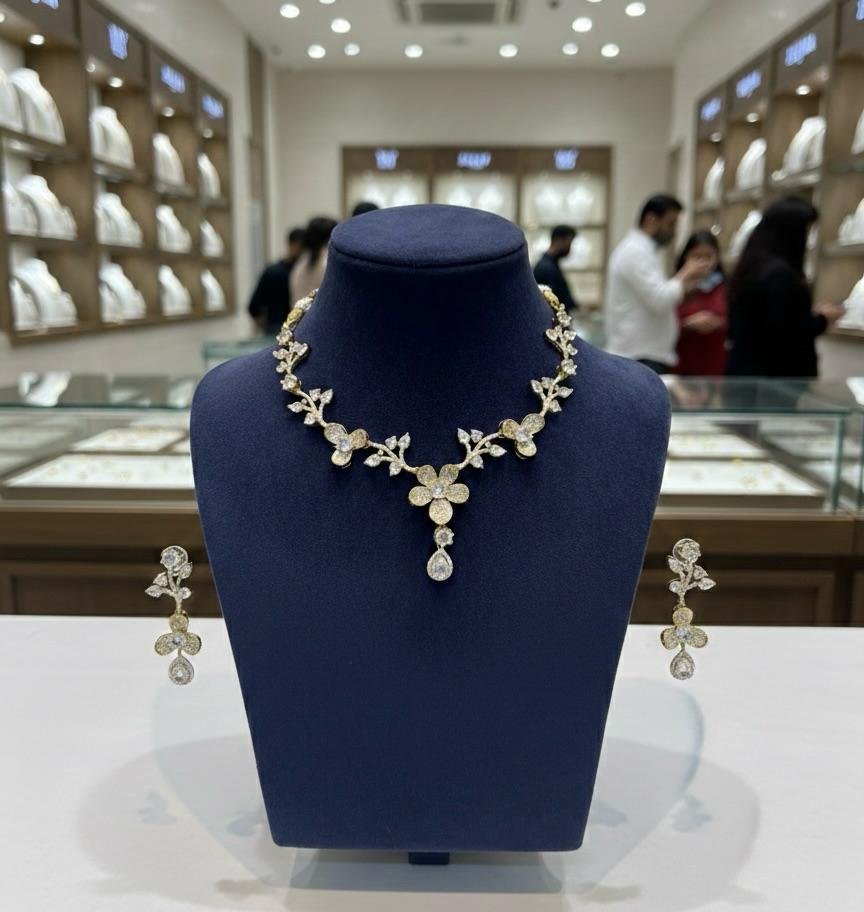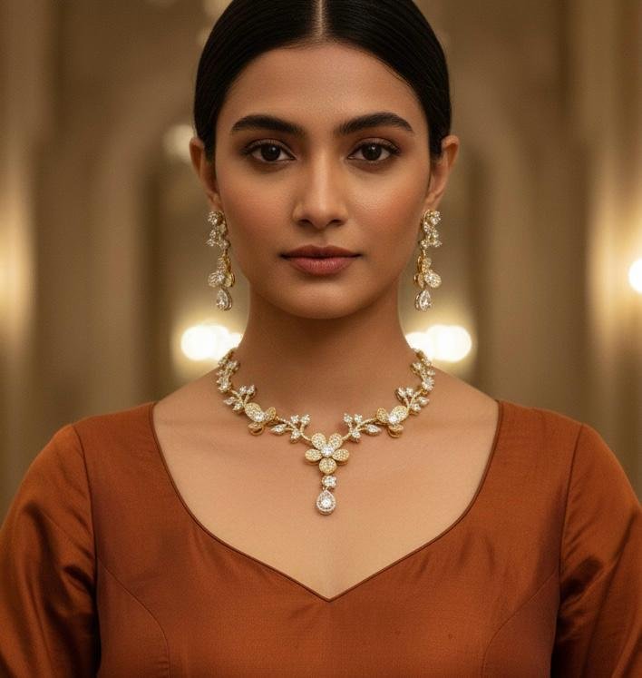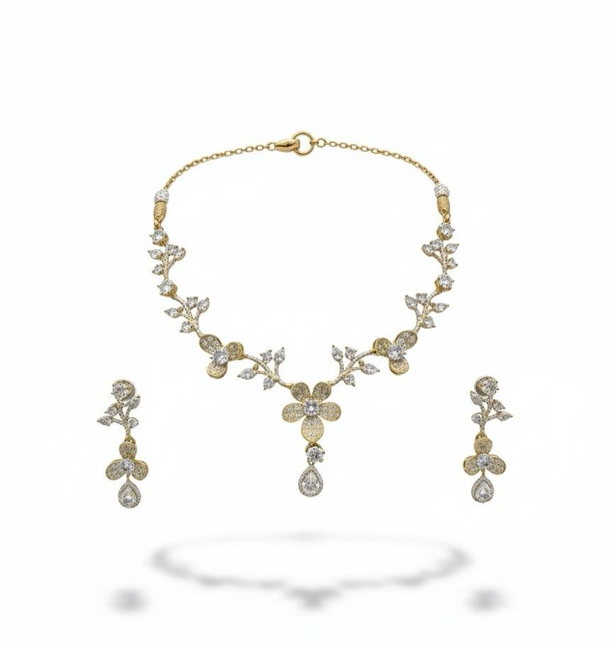 Be the first to review “American Diamond Antique Gold Polish AD Necklace Jewellery Set”