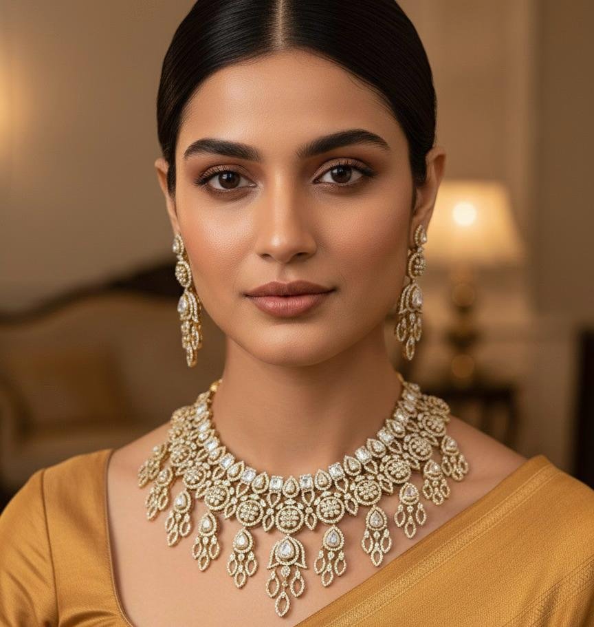Ideal for weddings, receptions, festivals, and special celebrations, this necklace set pairs beautifully with sarees, lehengas, and designer ethnic outfits. Designed for comfort and long-lasting brilliance, it reflects superior craftsmanship and refined style.