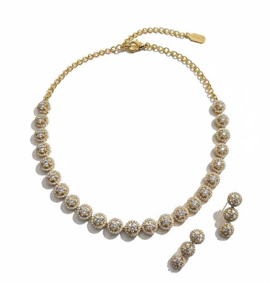 Be the first to review “American Diamond Antique Gold Polish AD Necklace Jewellery Set”