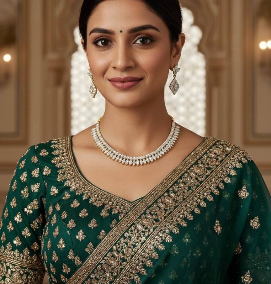 Perfect for weddings, festivals, parties, and celebrations, this necklace set complements sarees, lehengas, and other ethnic outfits effortlessly. Designed for comfort and long-lasting shine, it offers a luxurious look at a great value.