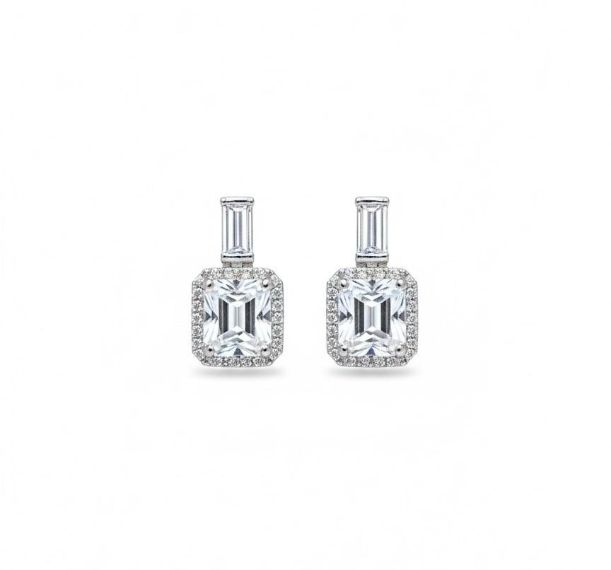 Premium silver tone American Diamond silver plated stud earrings with brilliant sparkle. Ideal for party and festive wear.