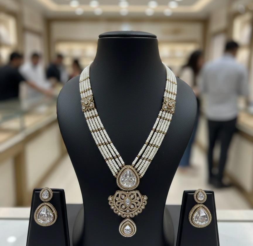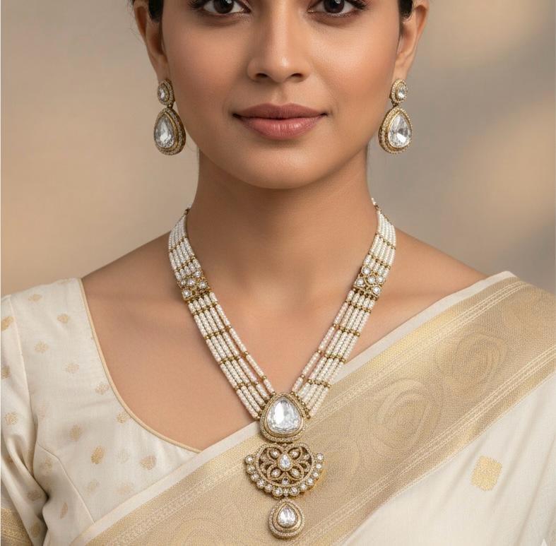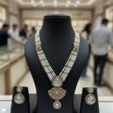 The long necklace design enhances sarees, lehengas, and ethnic outfits, making it ideal for weddings, receptions, festive celebrations, and cultural functions. The antique polish adds vintage charm, while the pearl work gives a soft and sophisticated touch.