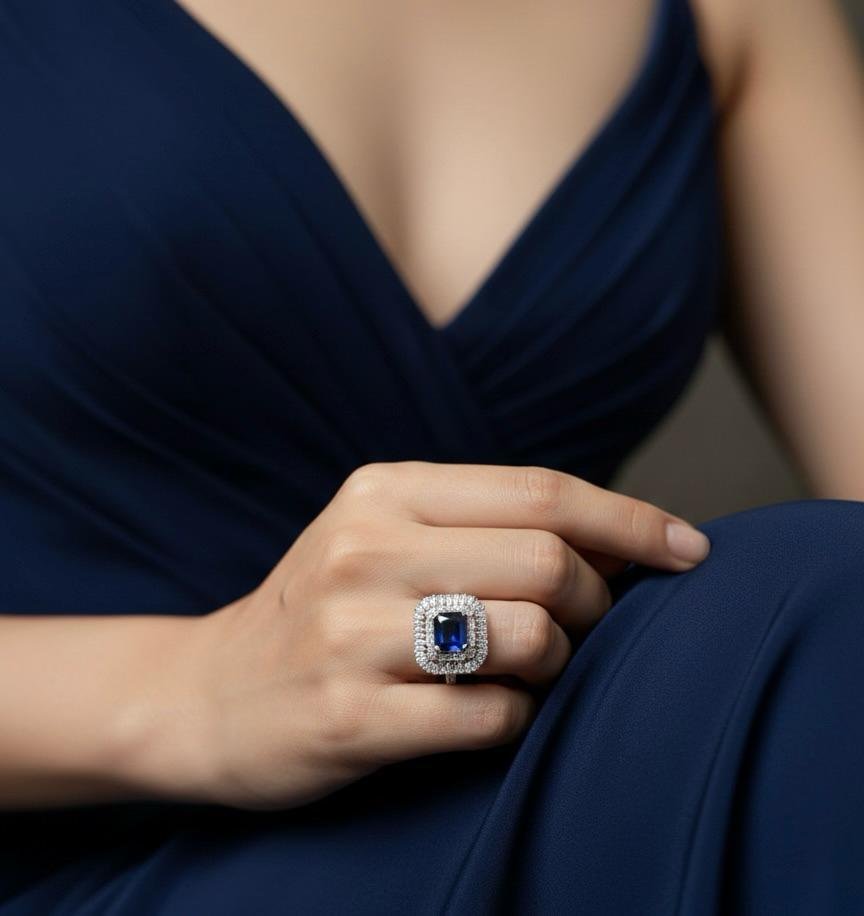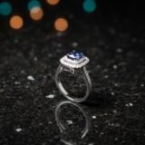 Add subtle sparkle with a pop of colour to your everyday style with the Blue Shine Silver American Diamond Finger Ring. Crafted with shimmering American diamond stones and enhanced by a classy combination of silver and blue stone work, this ring features a sleek silver polish for a clean and modern look.