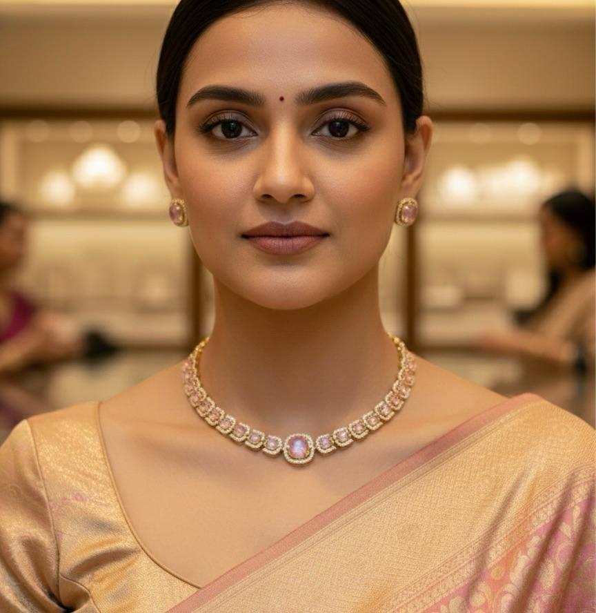Lightweight and comfortable to wear, this necklace set pairs effortlessly with sarees, lehengas, and ethnic outfits. A perfect blend of beauty, style, and affordability, it is also an excellent gifting option.