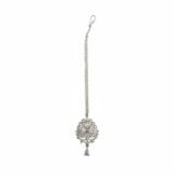 Elegant maang tikka featuring sparkling AD stone work with a beautiful silver polish in classic silver color.