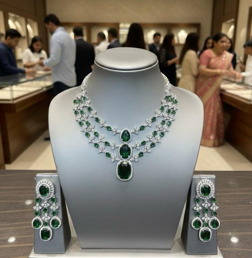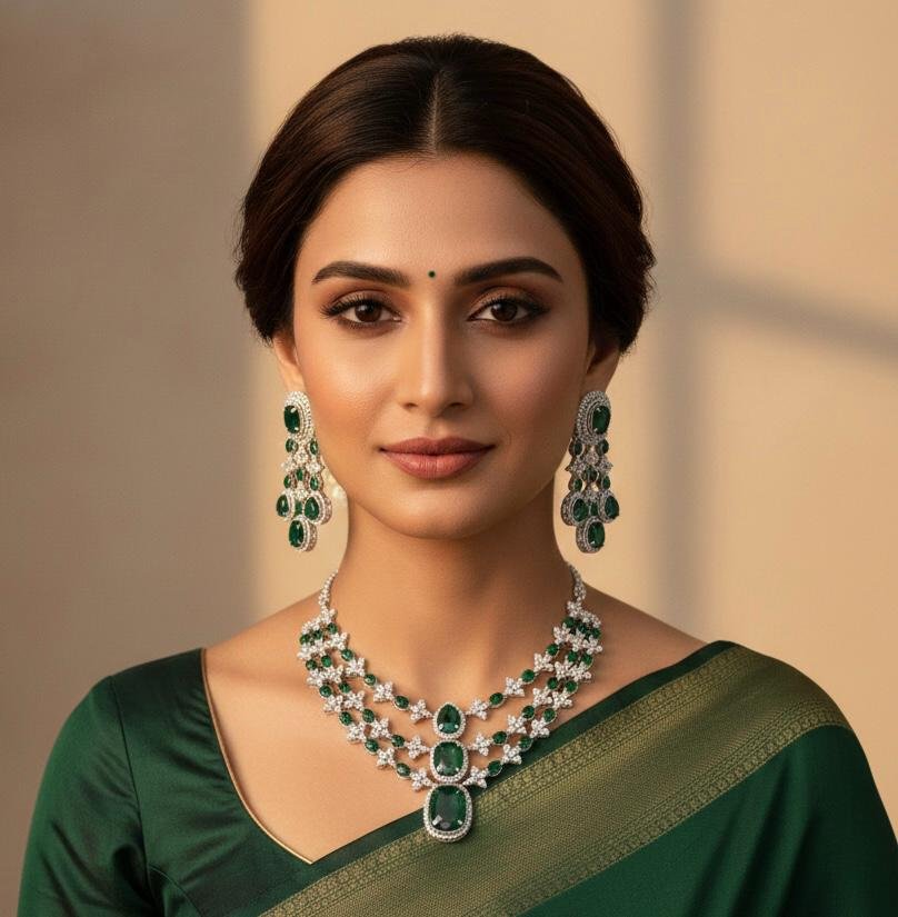 Be the first to review “Emerald Glow American Diamond Necklace Set”