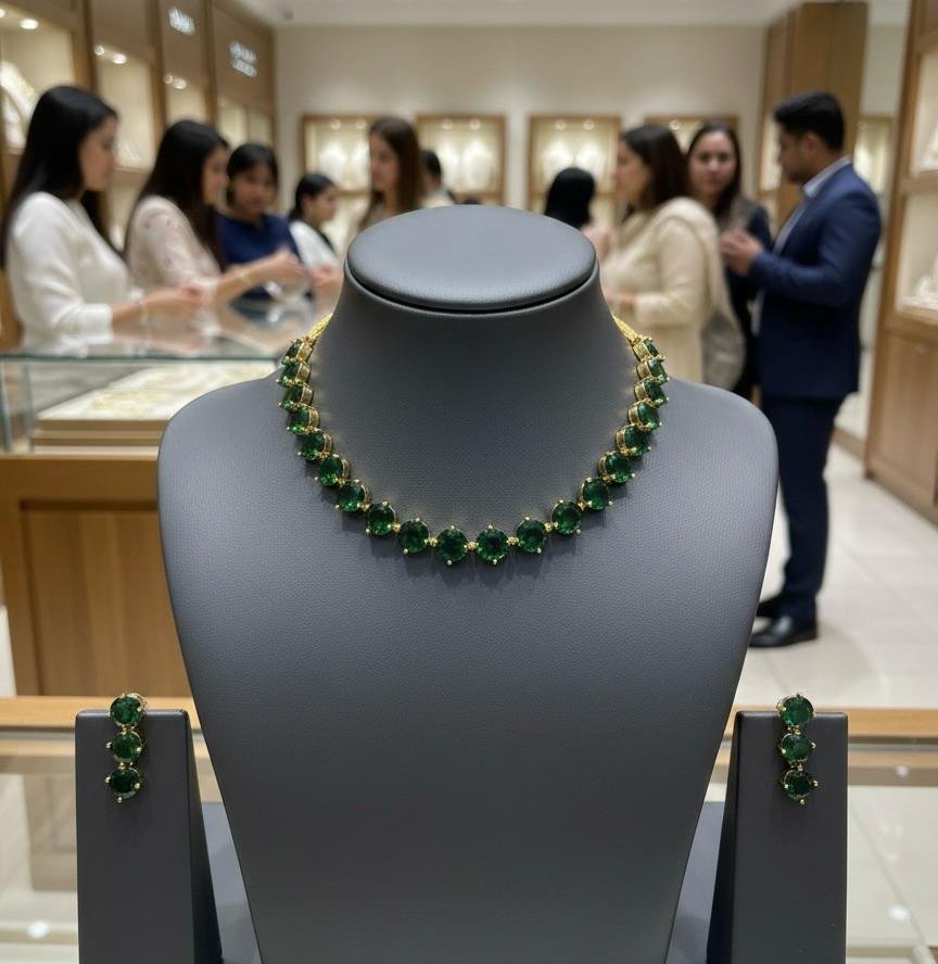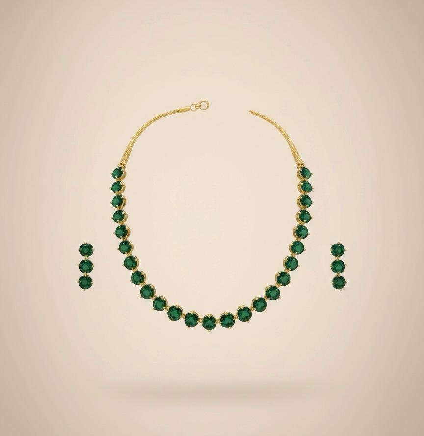 Be the first to review “Emerald Glow Antique American Diamond Necklace Set”
