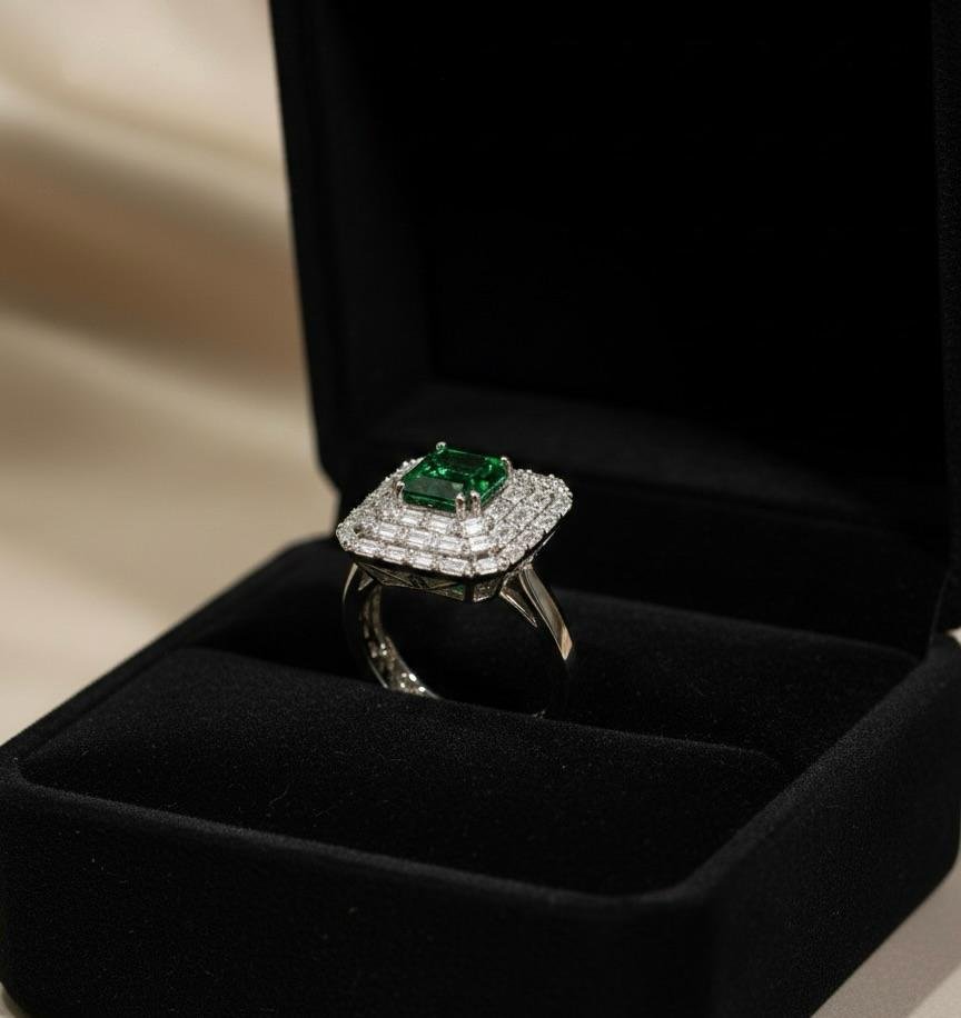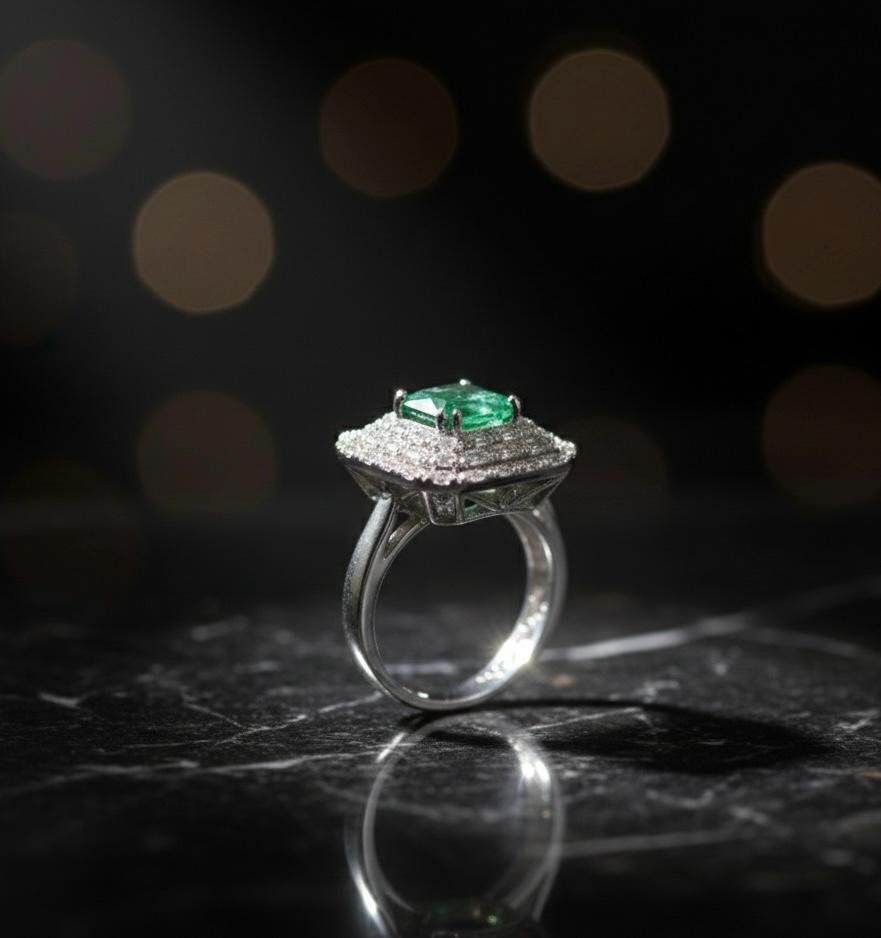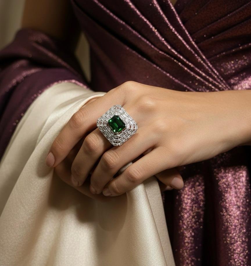 Be the first to review “Emerald Silver Spark American Diamond Finger Ring”