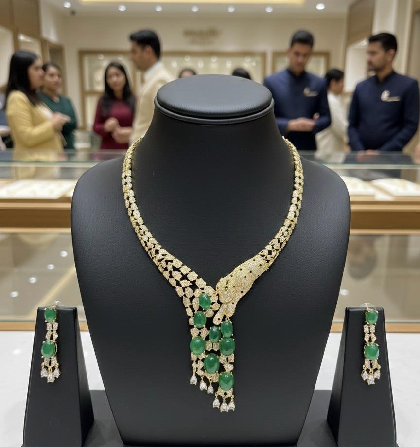 Be the first to review “Emerald Tiger American Diamond Necklace Set”