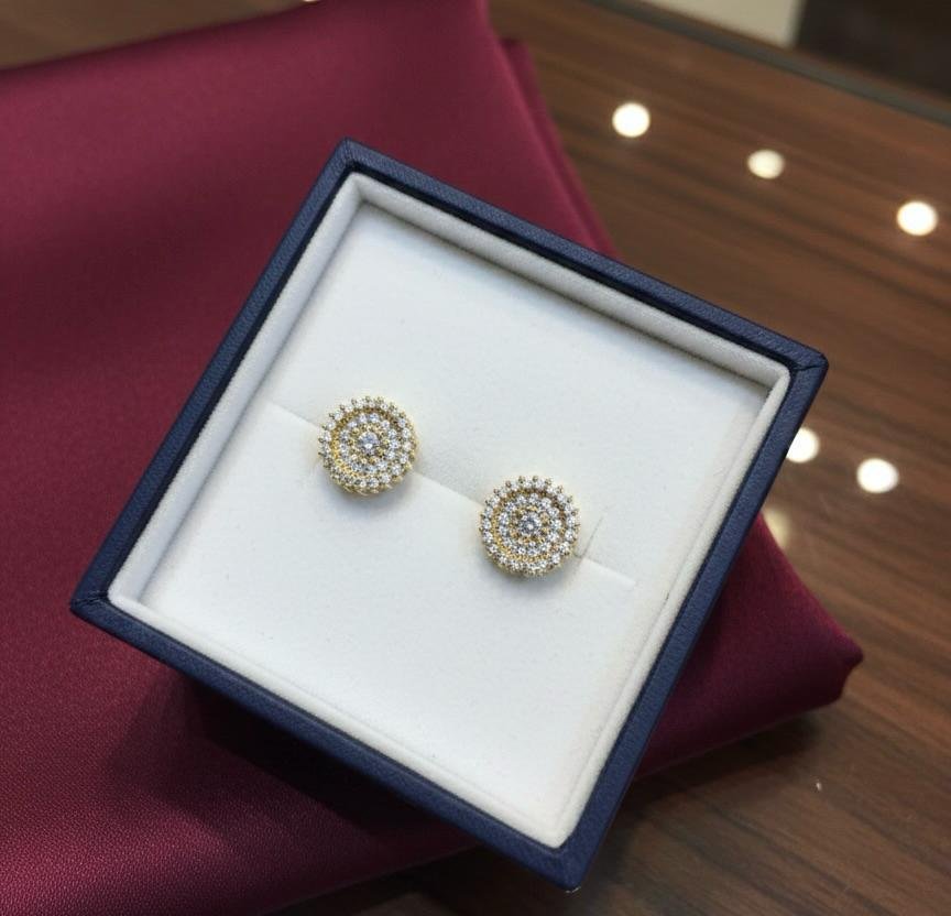 Elevate your jewellery collection with these elegant American Diamond Earrings featuring Pearl Work, beautifully finished with premium gold plating. The sparkling AD stones combined with delicate pearl detailing create a graceful and timeless design.