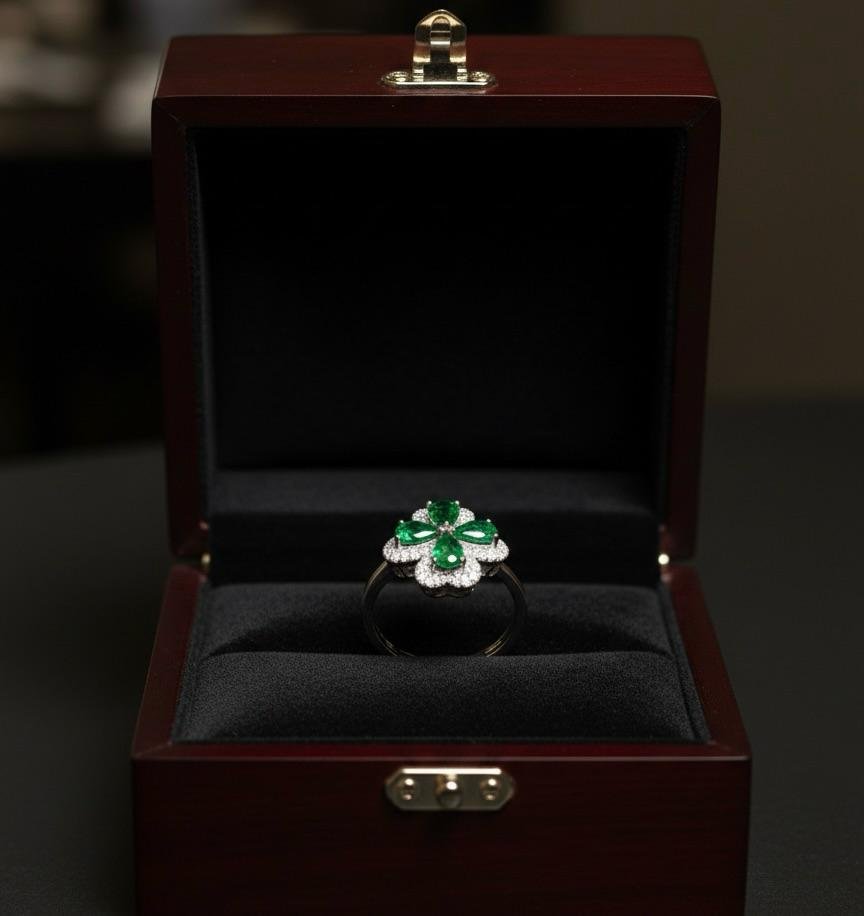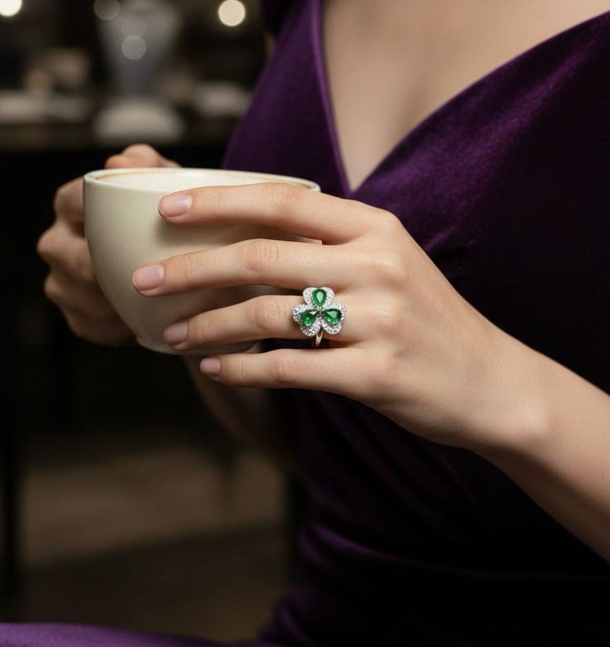 Be the first to review “Green Glow Silver American Diamond Finger Ring”