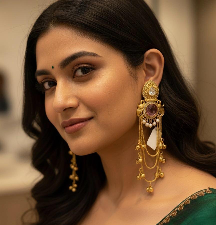 Add a vibrant touch to your look with these Kashmira earrings in stunning Pink Rani colour. Featuring intricate detailing and a premium finish, these earrings are lightweight and comfortable, making them perfect for weddings, parties, festive occasions, or gifting. Bright and elegant, they add charm to any ethnic or modern outfit.