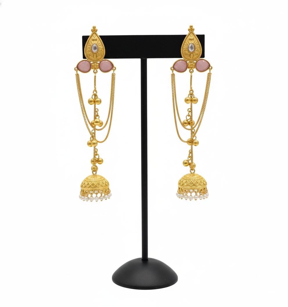 Make a statement with these elegant Kashmira long earrings in a stunning radium colour. Crafted with precision and a premium finish, these earrings add charm and sophistication to any outfit. Lightweight and comfortable, they are perfect for weddings, parties, festive occasions, and gifting.